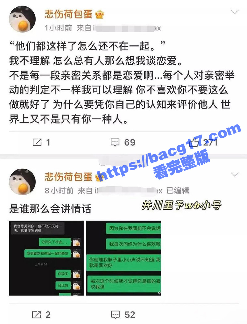 网友纷纷猜测:“是不是谈恋爱了呢?”毕竟两人的所作所为都是情侣爱人之间才该干的事情。让人意外的是,面对网友关于两人恋情的猜测,“井川里予”在她的小号上极力否认,言辞坚定地表示:“我俩本来就没谈恋爱,不是所有的亲密关系都是恋爱。”
